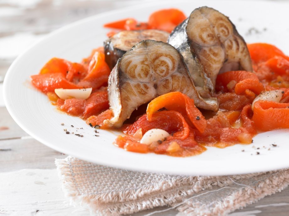 11. Средиземноморское ароматное блюдо из скумбрии с паприкой готово. Подавайте с красным вином.